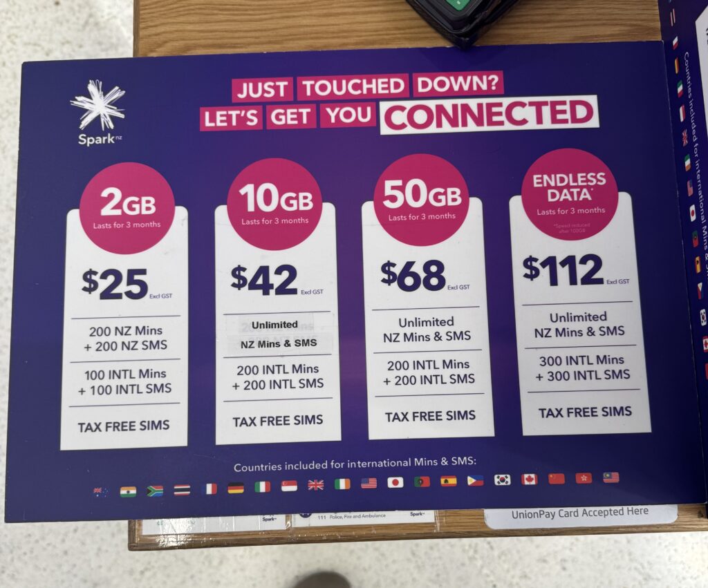 Sparkはオークランド空港をはじめ、空港の到着免税エリアに小さなブースを持っていて、そこではSparkのトラベルsimを免税価格で販売しています。