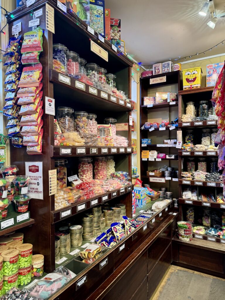 店内には世界中のカラフルなキャンディやグミ、ファッジがずらりと並び、試食もできるので観光途中に立ち寄るのにぴったりです。可愛らしい街並み散策とセットで楽しめます。