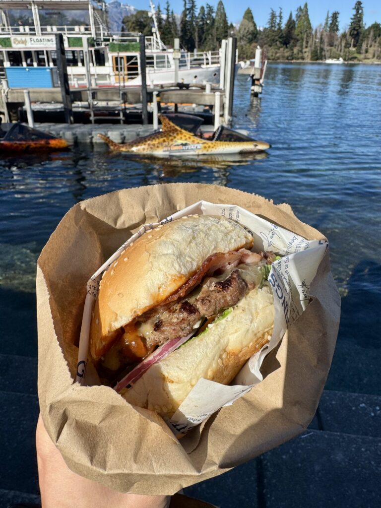 こちらはクイーンズタウン名物の超人気バーガーショップ。常に行列ができるほどで、そのボリューム満点のバーガーは旅行者なら一度は食べておきたい名物グルメです。ただ実は待ち時間はそれほど長くなく、私が行った時は、平日のお昼でしたが、およそ15分ほどで注文を受け取れました。