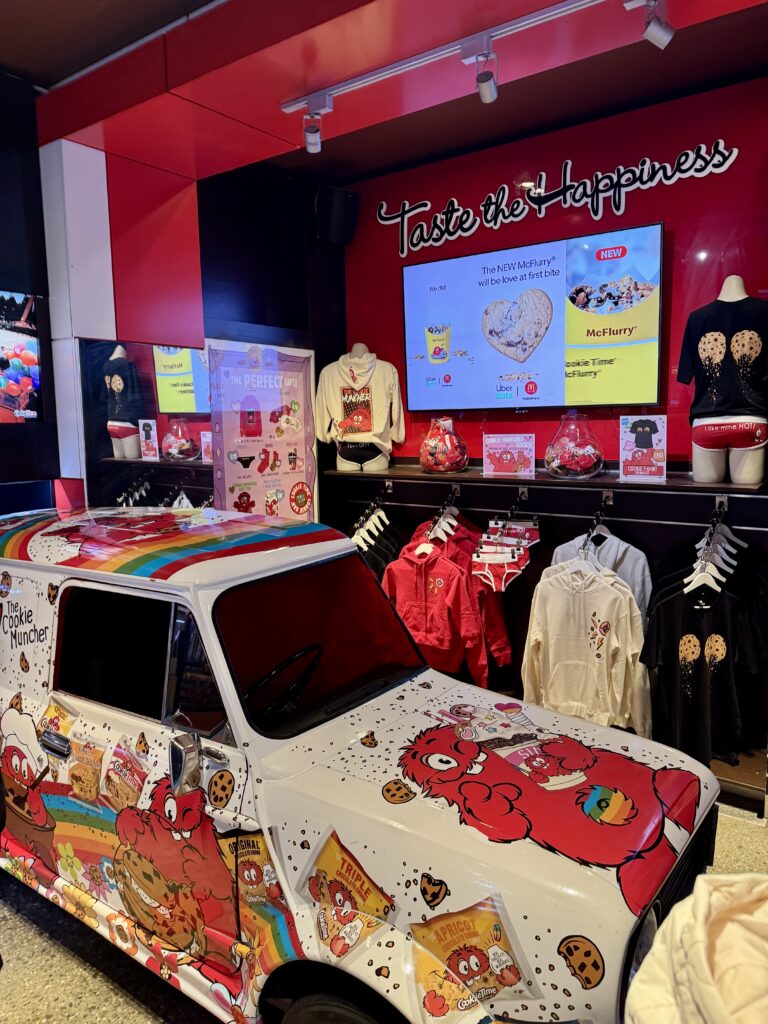 焼きたてクッキーやホットチョコレートやシェイクといったドリンクが楽しめ、カラフルな内装はSNS映えも抜群です。
