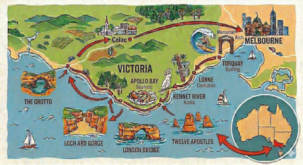 12使徒周辺の絶景スポットは、それぞれ車で5〜10分圏内。効率よく、かつ深く楽しむための見どころガイドです。