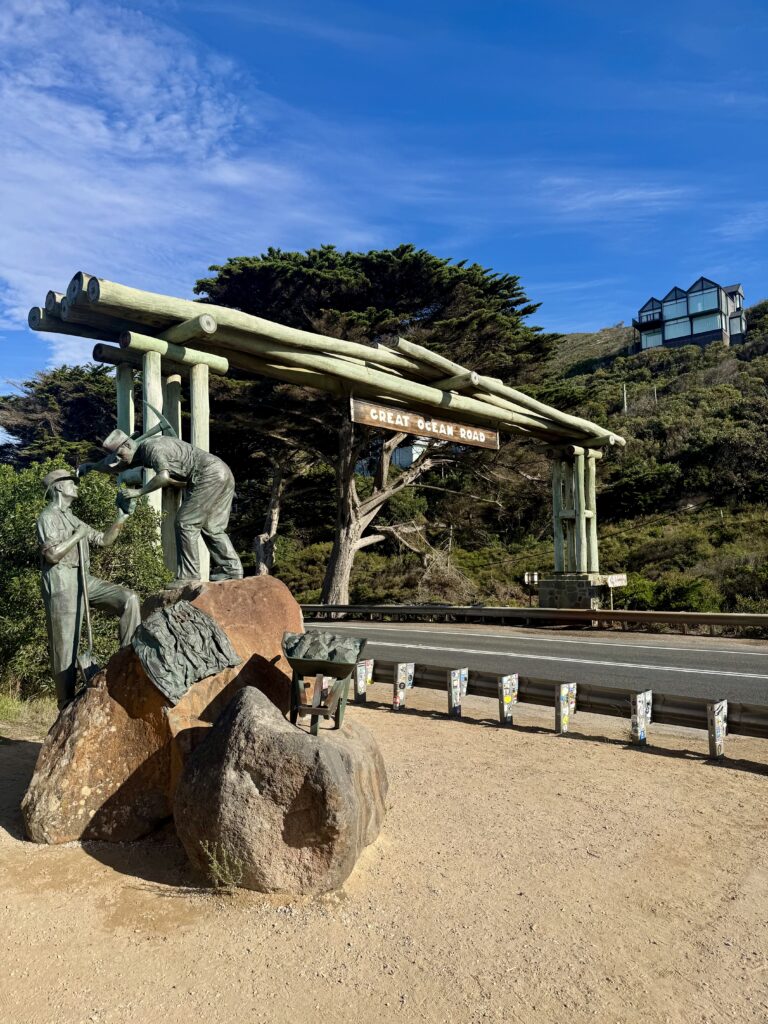 ベルズビーチを出発し車を走らせること、約40分。Great Ocean Roadの開始地点、「Memorial Arch(メモリアルアーチ)」に到着しました。